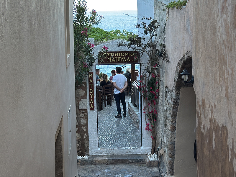 Κατά τη διάρκεια της περιήγησής μας στο κάστρο, ο ξεναγός μας μάς οδήγησε μέσα από λιθόστρωτα σοκάκια, κάτω από καμάρες και δίπλα σε επιβλητικά αρχοντικά, αποκαλύπτοντας πτυχές της ιστορίας που δεν φαίνονται με την πρώτη ματιά. Η Μονεμβασιά γνώρισε σημαντική ακμή κατά τη βυζαντινή περίοδο, αλλά και κατά τους χρόνους της ενετοκρατίας και της οθωμανικής κυριαρχίας. Ήταν σπουδαίο εμπορικό και ναυτικό κέντρο, γνωστό για τα κρασιά του, την τέχνη και τον πολιτισμό του.