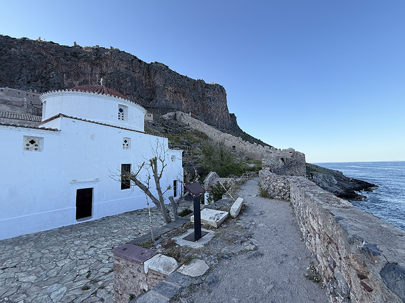 Εντυπωσιακή ήταν η επίσκεψη στην εκκλησία της Αγίας Σοφίας, χτισμένη τον 12ο αιώνα στην κορυφή του βράχου, καθώς και η πανοραμική θέα στο Μυρτώο Πέλαγος που κόβει την ανάσα. Η καστροπολιτεία διατηρεί μέχρι σήμερα την αίσθηση ενός αληθινού μεσαιωνικού οικισμού, χωρίς αυτοκίνητα, γεμάτη μυστήριο και ιστορικό βάθος.