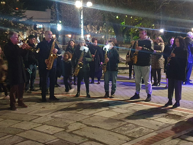 Μουσική, πυροτεχνήματα και χορός στο άναμμα του δέντρου στον Αμπελώνα