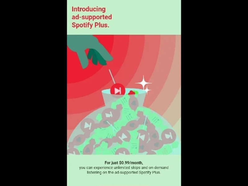 Το Spotify Plus θα έχει διαφημίσεις, ωστόσο θα δίνει μεγαλύτερη ελευθερία στους χρήστες να ακούσουν αυτό που θέλουν. Για παράδειγμα θα μπορούν να επιλέγουν το τραγούδι που θέλουν να ακούσουν, ενώ θα μπορούν να κάνουν παράβλεψη κομματιού όσες φορές θέλουν (στο δωρεάν πακέτο περιορίζονται στις έξι παραλείψεις την ώρα).