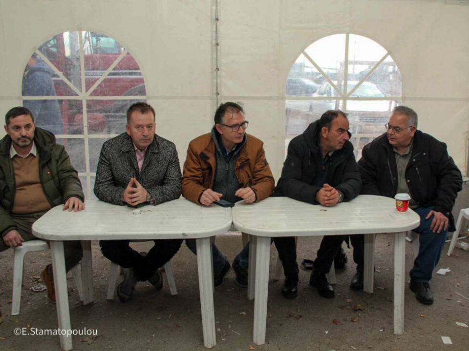 Συνάντηση με τους αγρότες του μπλόκου Πλατυκάμπου είχαν το απόγευμα της Κυριακής οι βουλευτές Βασίλης Κόκκαλης, Γιώργος Λαμπρούλης και ο εκπρόσωπος του Μάξιμου Χαρακόπουλου, Βασίλης Μάικος, ώστε να ακούσουν τα αιτήματά τους.