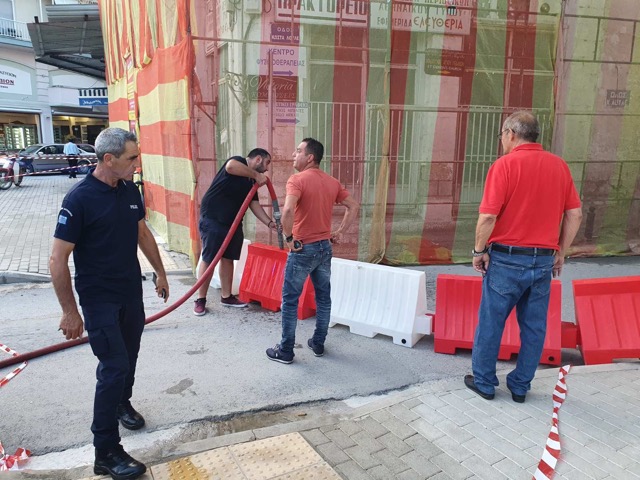 Ο Πρόεδρος του Δημοτικού Συμβουλίου Γεώργιος Σακούτσιος έφτασε αμέσως στο σημείο που κατέρρευσε μέρος του διατηρητέου στην Κεντρική Πλατεία Τυρνάβου.