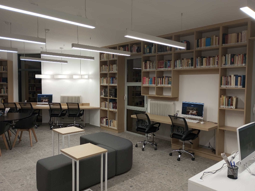 Οι χώροι της βιβλιοθήκης προσφέρουν σύγχρονες, φιλόξενες και λειτουργικές υποδομές, ιδανικές για μελέτη και έρευνα. Αποτελεί έναν σύγχρονο χώρο γνώσης και δημιουργίας για όλη την τοπική κοινότητα, διαθέτει άνετους χώρους και μοντέρνο εξοπλισμό, καθώς και σύγχρονο ψηφιακό εξοπλισμό και πρόσβαση σε ηλεκτρονικές βάσεις δεδομένων.