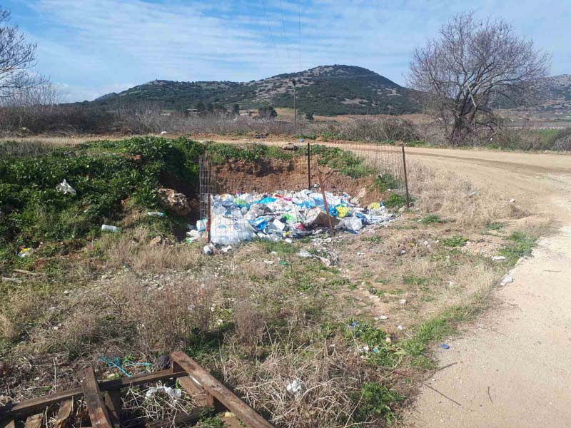 Το σημείο που βρέθηκε η παράνομη χωματερή, το νεκρό ζώο βρίσκεται δίπλα σε αντλιοστάσιο που χρησιμοποιούν οι αγρότες και οι κτηνοτρόφοι της περιοχής για να προμηθεύονται νερό για τους ψεκασμούς και τα ζώα τους.