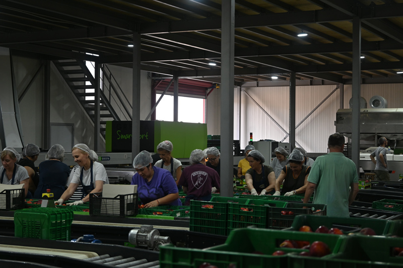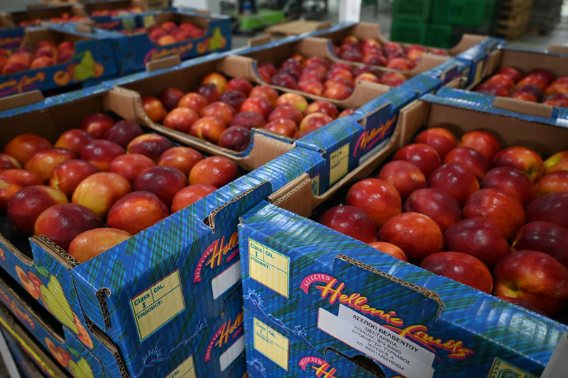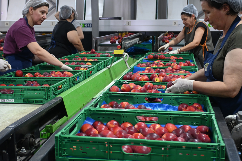 Στα ψυγεία αυτήν την εποχή επικρατεί αναβρασμός. Υπερσύγχρονες μηχανές μετρούν, ζυγίζουν, διαλέγουν ένα ένα τα νεκταρίνια, ροδάκινα βερίκοκα και κεράσια.