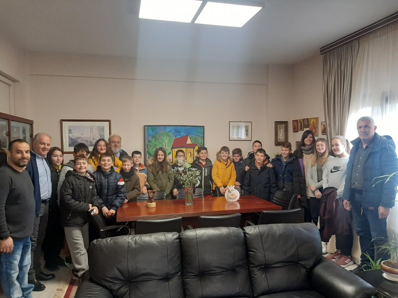 Ο Δήμαρχος υποδέχθηκε τους εκπαιδευτικούς και τα παιδιά στο γραφείο του και μοιράστηκε μαζί τους τις σκέψεις, τις ιδέες, τους προβληματισμούς αλλά και τα όνειρά τους για το μέλλον το δικό τους και του Δήμου Τεμπών.