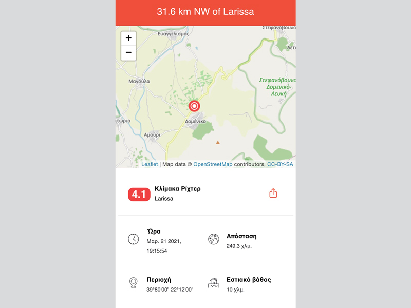 Νέος σεισμός 4.1 βαθμών της κλίμακας ρίχτερ με επίκεντρο το Δομένικο
