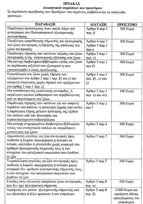 •Η Σήμανση και καταγραφή των στοιχείων του με ψηφιακή ταυτότητα (τσιπ).