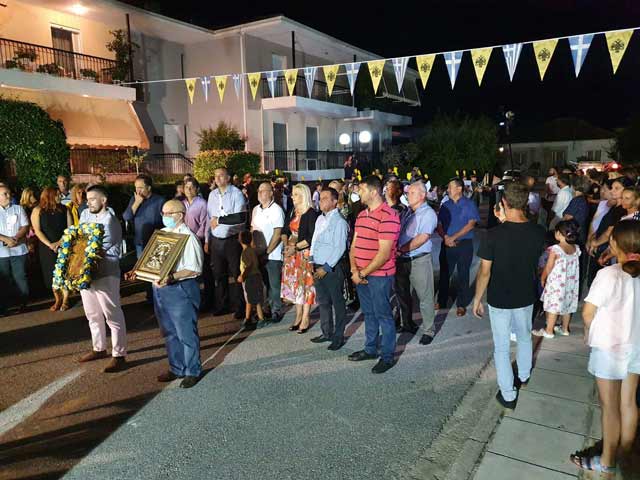 Τελέστηκε απόψε ο Εσπερινός μετά αρτοκλασίας και έγινε λιτάνευση των ιερών εικόνων του Αγίου που φυλάσσονται στον μικρό Ναό που τίποτα δεν είχε να ζηλέψει από ανάλογες εκδηλώσεις.