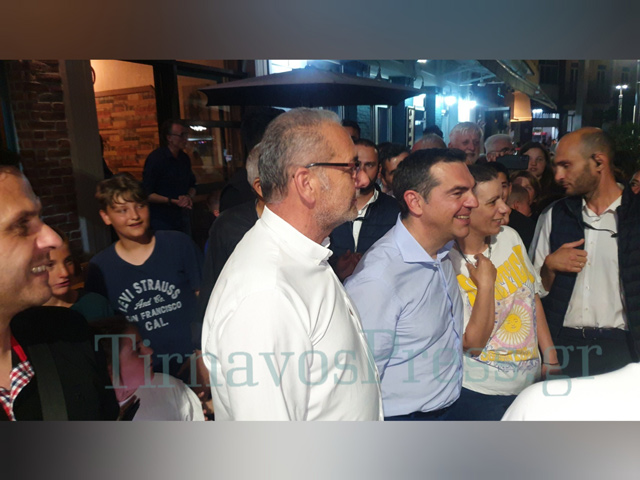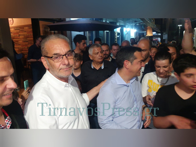 Με δυσκολία περπάτησε ανάμεσα στις καφετέριες της πλατείας έφτασε μέχρι το εκλογικό κέντρο του κόμματος συνομίλησε και χαιρέτησε σχεδόν όλους όσους καθόταν στα καφέ και εκεί συνάντησε και τον Δήμαρχο Τυρνάβου κ Ιωάννη Κόκουρα που ευχαρίστως τον καλωσόρισε στον Τύρναβο και είχαν μια σύντομη συζήτηση.