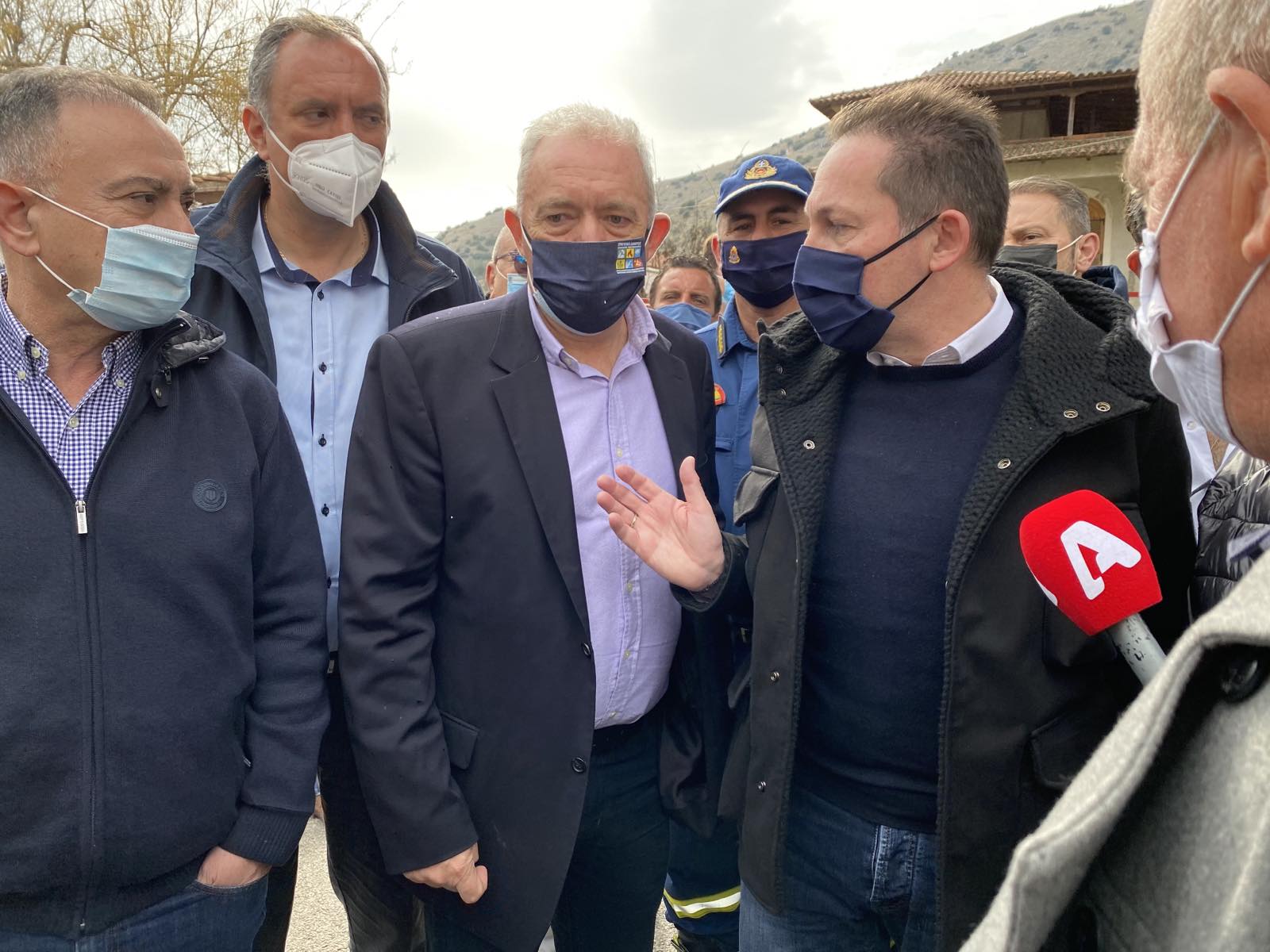 Ο Αναπληρωτής Υπουργός Εσωτερικών κ Στέλιος Πέτσας στο Δημοτικό Σχολείο που καταστράφηκε στο Δαμάσι