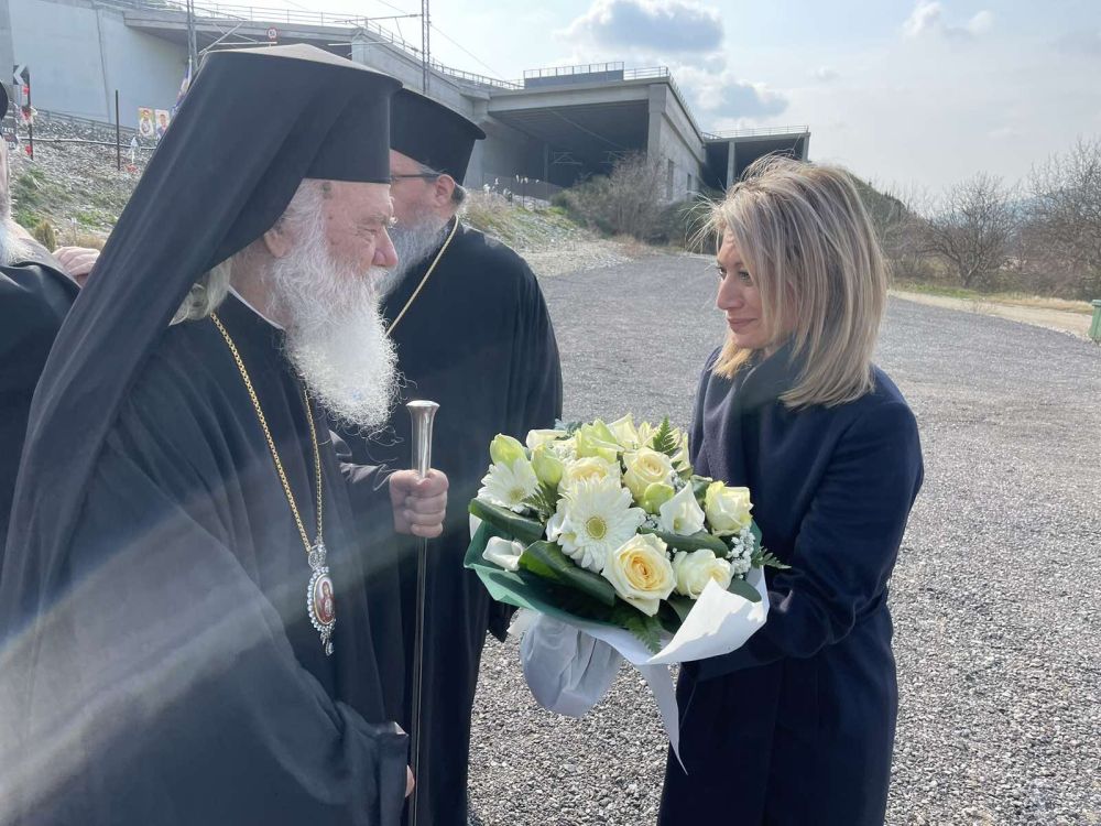 Τον Μακαριώτατο υποδέχθηκε, στα όρια της Ιεράς Μητροπόλεως Λαρίσης και Τυρνάβου, ο Σεβασμιώτατος Μητροπολίτης κ. Ιερώνυμος και τον συνόδευσε στο χώρο του δυστυχήματος όπου τους ανέμενε η κυρία Καρυστιανού συγγενής θύματος. Τον Μακαριώτατο συνόδευαν ο Πανοσιολ. Αρχιμ. κ. Ιωάννης Καραμούζης Αρχιγραμματεύς της Ιεράς Συνόδου της Εκκλησίας της Ελλάδος καθώς και ο Πρωτοδιάκονός του Ιερολογιώτατος κ. Ιωάννης Μπούτσης.