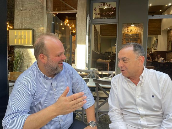 Ανάρτηση στον προσωπικό του λογαριασμό στα social media έκανε ο Βουλευτής της Νέας Δημοκρατίας του Νομού Λάρισας κ. Χρήστος Κέλλας, ο οποίος συναντήθηκε σε ουζερί στη Λάρισα για χαλαρή κουβεντούλα με τον κ. Σπύρο Πρωτοψάλτη.