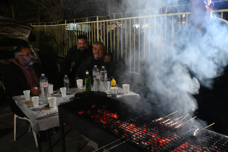Τα 500 σουβλάκια και λουκάνικα τελείωσαν από την ψησταριά και το κρασί άφθονο για όλους λίγες μέρες πριν την Αποκριά και την Καθαρά Δευτέρα.
