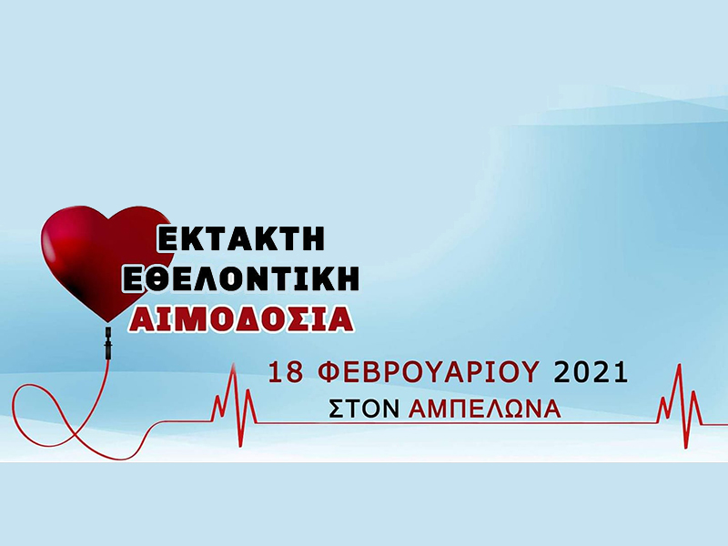 Για τον λόγο αυτό στα πλαίσια της δράσης: “ΟΛΟΙ ΜΑΖΙ ΜΠΟΡΟΥΜΕ” στην οποία ο Σύλλογός συμμετέχει ενεργά απ’ τον Μάρτιο του 2020, πραγματοποιεί σε συνεργασία με τον Δήμο Τυρνάβου, ο οποίος επίσης, συμμετέχει από φέτος στην παραπάνω δράση, έκτακτη εθελοντική αιμοδοσία, την Πέμπτη 18 Φεβρουαρίου 2021 από τις 9,00 το πρωί, έως τις 12:45 το μεσημέρι στον Αμπελώνα στον χώρο του Κ.Α.Π.Η.