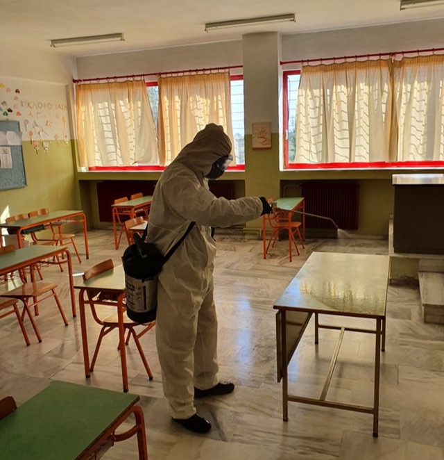 Ο Δήμος Τυρνάβου προχώρησε σε απολυμάνσεις στα σχολεία που είχανε κρούσματα κορωνοιού