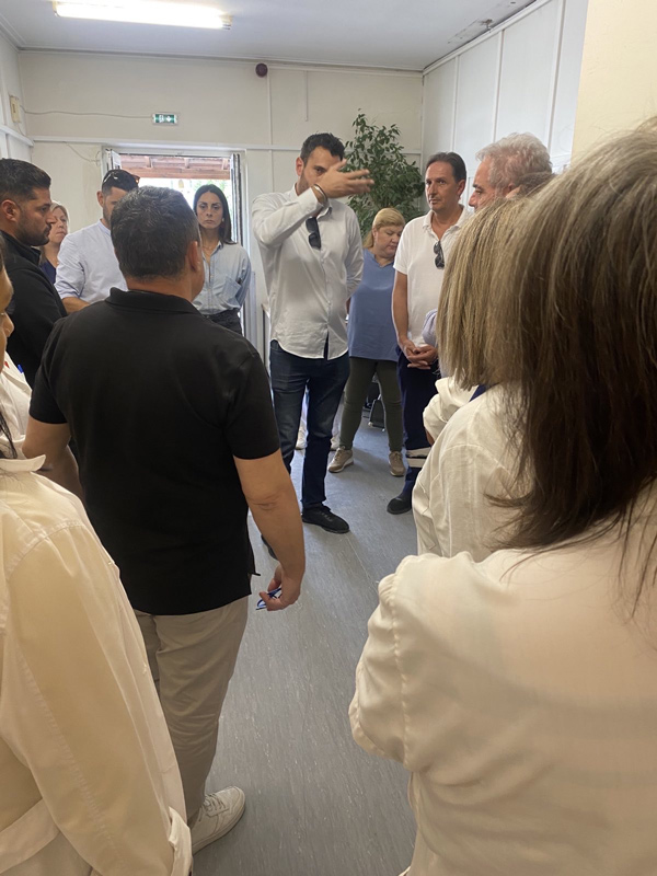 Ακολούθησε κοινή επίσκεψη στο Κέντρο Υγείας Τυρνάβου, όπου ο δήμαρχος αλλά και ο διοικητής της ΥΠΕ είχαν την ευκαιρία να μιλήσουν με τον διευθυντή, ιατρικό προσωπικό και τους εργαζομένους της δομής.