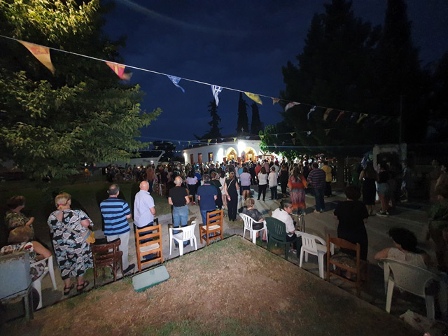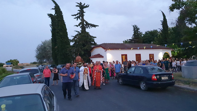 Τον Μέγα Πανηγυρικό Εσπερινό μετά Αρτοκλασίας και Θείου Κήρυγματος τέλεσαν οι ιερείς π Ιωάννης και π. Δημήτριος ενώ έγινε λιτάνευση της Ιεράς Εικόνας από γυναίκες στους δρόμους της συνοικίας.