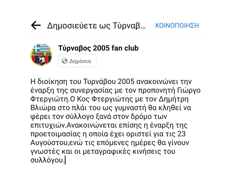 Ο Γιώργος Φτεργιωτης στον Τύρναβο. Ένας δικός μας νέος κ επιτυχημένος προπονητής, ο Γιώργος Φτεργιωτης αναλαμβάνει τις τύχες της ομάδας.