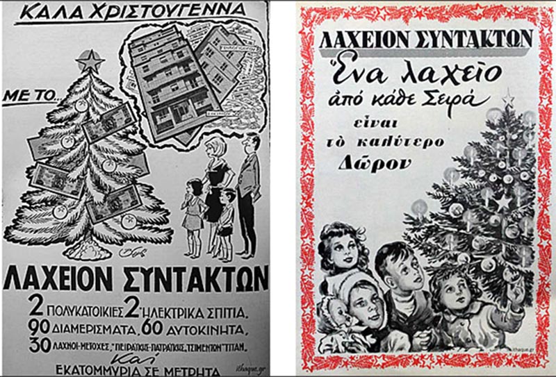 Οι τυχεροί λαχνοί μοίραζαν φοβερά για την εποχή δώρα, όπως «2 πολυκατοικίες, 2 ηλεκτρικά σπίτια, 90 διαμερίσματα, 60 αυτοκίνητα, εκατομμύρια σε μετρητά», μέχρι και… «μετοχές της Πειραϊκής Πατραϊκής και των τσιμέντων Τιτάν». Το λαχείο συντακτών καταργήθηκε επί Χούντας, γεγονός που δημιούργησε μεγάλη ένταση το 1968 στο δημοσιογραφικό επάγγελμα. Το χριστουγεννιάτικο δικαίωμα των Ελλήνων στο όνειρο συνεχίστηκε έκτοτε με το Κρατικό Λαχείο Κοινωνικής Αντίληψης και το Λαϊκό Λαχείο.