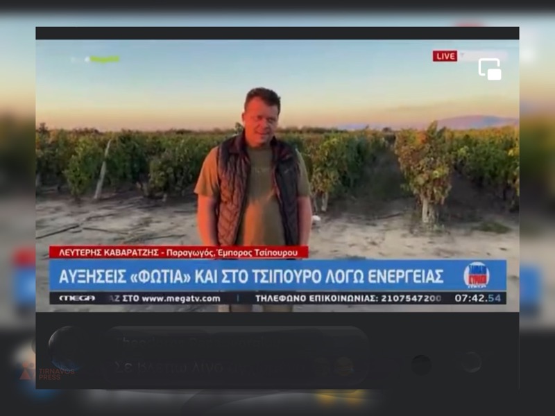 Στο Mega Σαββατοκύριακο φιλοξενήθηκε ο Τυρναβίτης Λευτέρης Καβαρατζής, παραγωγός και έμπορος τσίπουρου για να μιλήσει για τα προβλήματα που αντιμετωπίζει ο κλάδος.