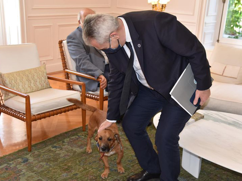 Στα πλαισια της συνάντησης του πρωθυπουργού Κυριάκου Μητσοτάκη με με την ηγεσία της Διακοινοβουλευτικής Συνέλευσης Ορθοδοξίας. Ο Λαρισαίος βουλευτής είχε την ευκαιρία να τα πει με τον πρωθυπουργό αλλά δεν έχασε και την ευκαιρία να γνωρίσει από κοντά και να χαϊδέψει τον πιο διάσημο σκύλο της Ελλάδος. Τον Πινατ, το αδέσποτο που υιοθέτησε το Μέγαρο Μαξίμου.
