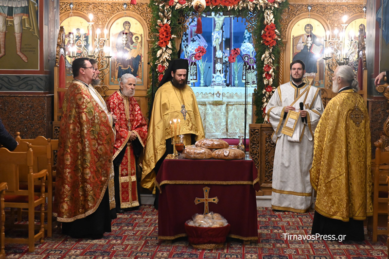 Την ακολουθία τέλεσε ο Σεβασμιώτατος Μητροπολίτης Ελασσώνος κ.κ. Χαρίτων, συλλειτουργούντων όλων των ιερέων του Ναού, ενώ πραγματοποιήθηκε και Αρτοκλασία.