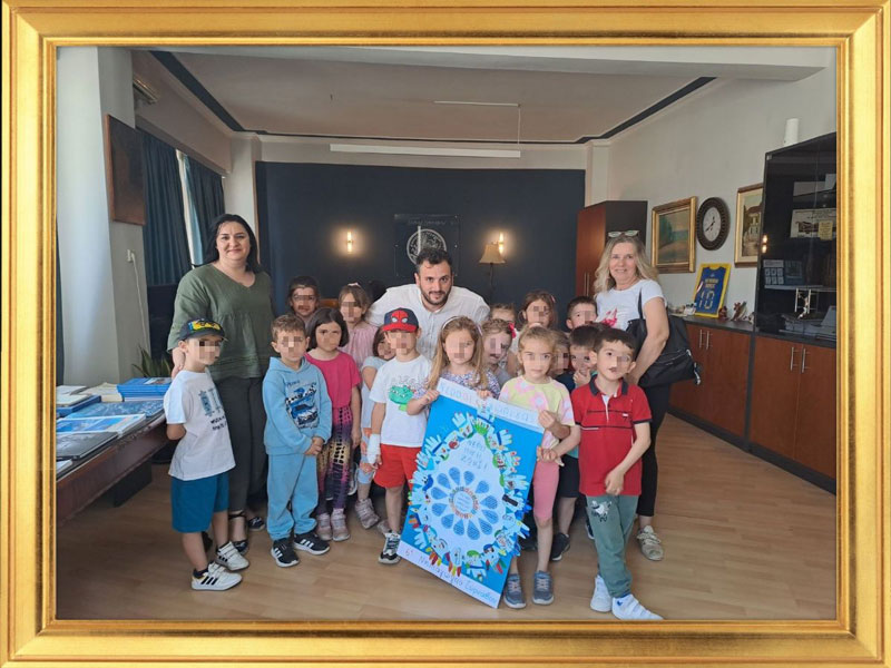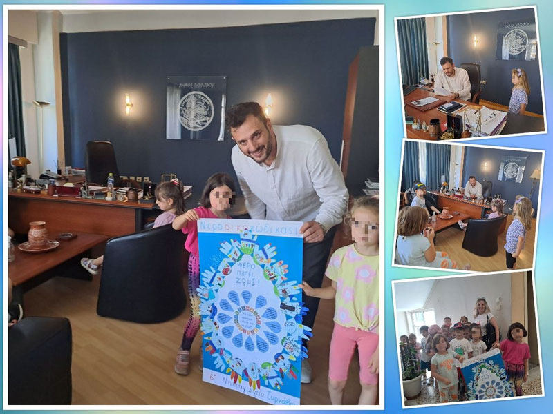 Με ενθουσιασμό και υπευθυνότητα, τα παιδιά επισκέφτηκαν τον Δήμαρχο Τυρνάβου, κ. Στέλιο Τσικριτσή, προκειμένου να του παρουσιάσουν το έργο τους και να τον ενημερώσουν για τη δράση τους. Ο Δήμαρχος άκουσε με ενδιαφέρον τις προτάσεις των μικρών πολιτών και τα συνεχάρη για την οικολογική τους ευαισθησία.