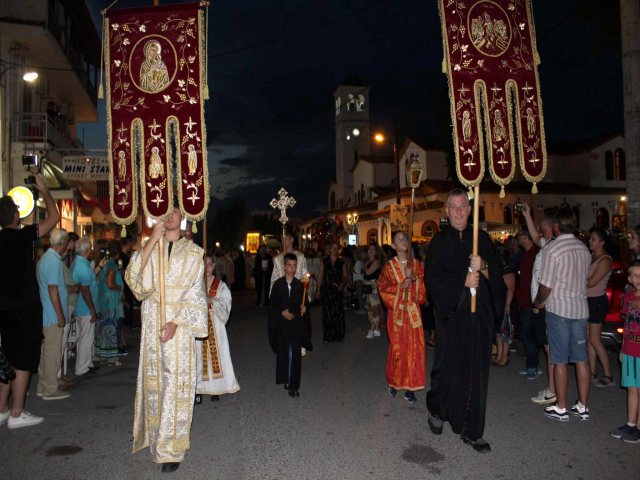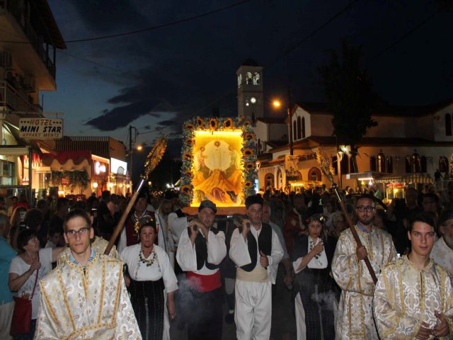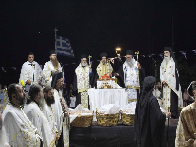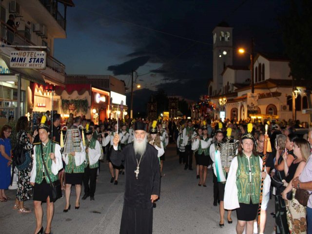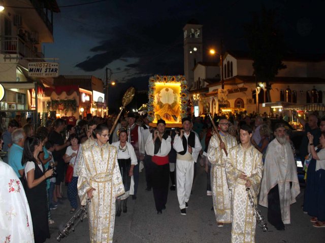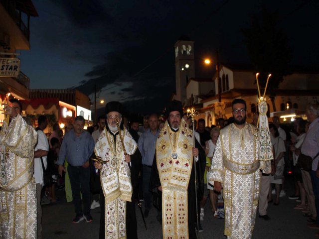 Χθες το απόγευμα του Σαββάτου, τελέστηκε πανηγυρικός αρχιερατικός εσπερινός στον Ιερό Ναό Μεταμορφώσεως του Σωτήρος, χοροστατούντος του σεβασμιοτάτου μητροπολίτη Kίτρους, Κατερίνης και Πλαταμώνος κ. Γεωργίου. Ακολούθησε η λιτάνευση της ιεράς εικόνος της Μεταμορφώσεως του Σωτήρος στους κεντρικούς δρόμους της κωμόπολης με συνοδεία της Φιλαρμονικής «ΓΑΛΙΛΑΙΑ» του Μεγαλομάρτυρος Αγίου Γεωργίου Λαρίσης, στη συνέχεια στην πλατεία, δίπλα στον ναό τελέστηκε αρτοκλασία και θείο κήρυγμα από τον σεβασμιότατο μητροπολίτη κ Γεώργιο. Τέλος έγινε και η ευλογία των σταφυλιών, παρουσία του δημάρχου Δίου – Ολύμπου Βαγγέλης Γερολιόλιος, καθώς εκπροσώπων στρατιωτικών αρχών.