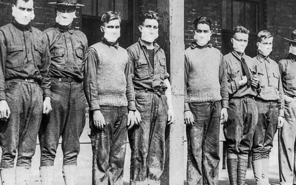 Με το ξέσπασµα της πανδηµίας στις αρχές του προηγούµενου αιώνα, πολλές πολιτείες των ΗΠΑ κήρυξαν τις µάσκες υποχρεωτικές. Από τη Νέα Υόρκη µέχρι το Σιάτλ οι πολίτες φορούσαν µάσκες, φτιαγµένες συνήθως από γάζα, ενίοτε από τουλπάνι και από µετάξι. Στον αγώνα κατά της γρίπης, χιλιάδες νοσηλεύτριες του Ερυθρού Σταυρού κατασκεύαζαν και συναρµολογούσαν µάσκες και καλύµµατα προσώπου.