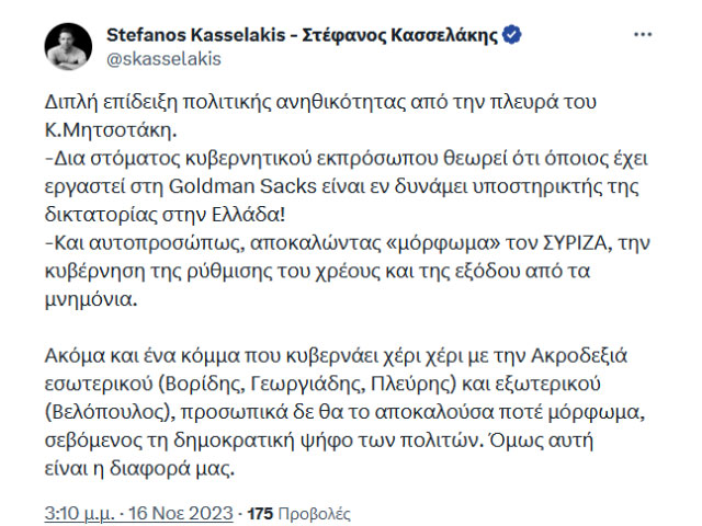 Διπλή επίδειξη πολιτικής ανηθικότητας από την πλευρά του Κ. Μητσοτάκη έγραψε ο Στέφανος Κασσελάκης στο Twitter και συνεχίζει: