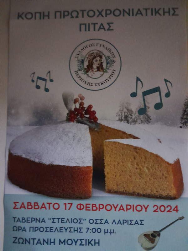 Ο Σύλλογος Γυναικών περιοχής Συκουρίου σας προσκαλεί στην κοπή της πρωτοχρονιάτικης πίτας