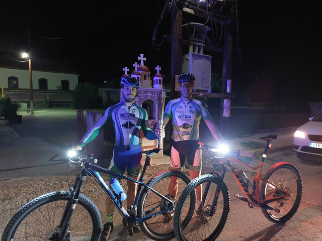 Ο Ιωάννης Ταμπόσης παρέλαβε την σκυτάλη μπροστά από τον Ιερό Ναό Ευαγγελισμού της Θεοτόκου στη Ροδιά από δύο ποδηλάτες που έφτασαν από τους Γόνους στις 20:50μ.μ..