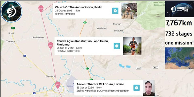 Ο Τυρναβίτης αθλητής μεταφέρει από την Ροδιά  Τυρνάβου στην Φαλάνη και την Λάρισα το παγκόσμιο μήνυμα της κλιματικής αλλαγής συμμετέχοντας στη μεγαλύτερη παγκόσμια σκυταλοδρομία για την περιβαλλοντική κρίση, με σημαντικό τμήμα της σε ξηρά και θάλασσα την Ελλάδα.