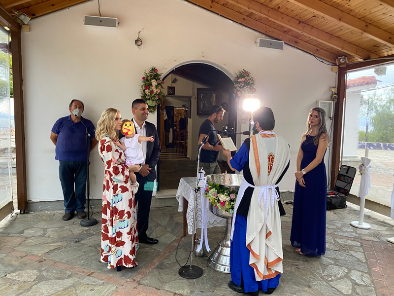 Την όμορφη κορούλα τους βάφτισαν η Ίριδα Σταρόβα και ο “καπετάνιος” Νικόλαος Δημουλάς από τον Τύρναβο. Η βάφτιση έγινε στον Ιερό Ναό του Προφήτη Ηλιά στο Χαϊδάρι.