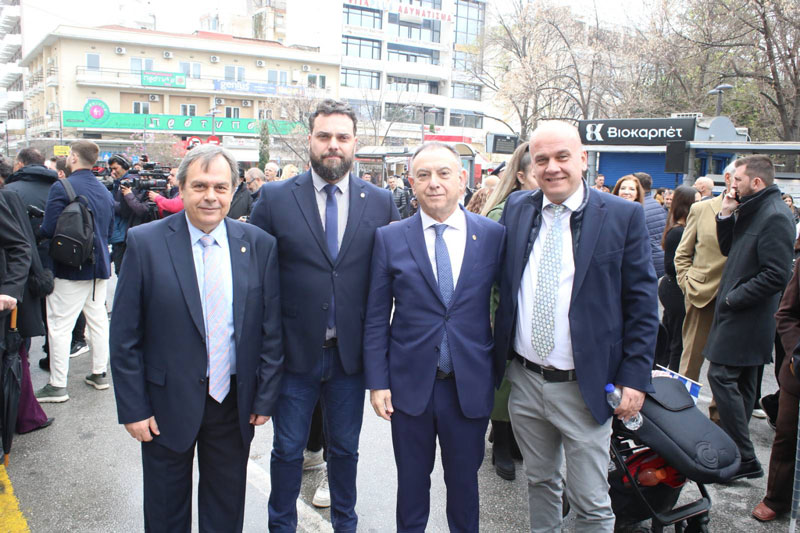Στη φωτογραφία διακρίνεται μαζί με τον Πρόεδρο του ΣΕΑΝ Λάρισας, κ. Δημήτρη Κατσανάκη, τον Αντιπρόεδρο, κ. Αθανάσιο Μέρα, και τον Έφορο, κ. Χρήστο Μάρκου, αμέσως μετά το πέρας της παρέλασης, την οποία άνοιξε το εντυπωσιακό άγημα των Εφέδρων Αξιωματικών.