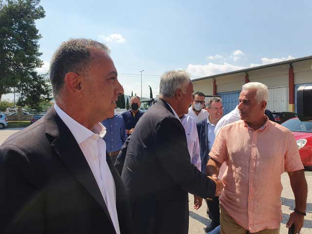 Ο Υπουργός Εσωτερικών συνοδευόμενος από τους Βουλευτές Λάρισας, Μάξιμο Χαρακόπουλο, Χρήστο Κέλλα και Στέλλα Μπίζιου και τον Περιφερειάρχη Θεσσαλίας Κώστα Αγοραστό, έφτασε το μεσημέρι στο Οινοποιείο Τυρνάβου όπου τον υποδέχτηκε ο Πρόεδρος του Οινοποιητικού Συνεταιρισμού Χρήστος Τσιτσιρίγγος.