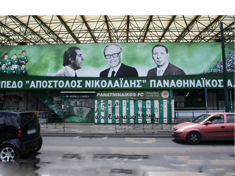 Σήμερα στην κεντρική είσοδο του γηπέδου της Λεωφόρου Αλεξάνδρας δεσπόζουν πλέον κατά σειρά οι μορφές των Παύλου Γιαννακόπουλου, Απόστολου Νικολαϊδη και Γιώργου Καλαφάτη».