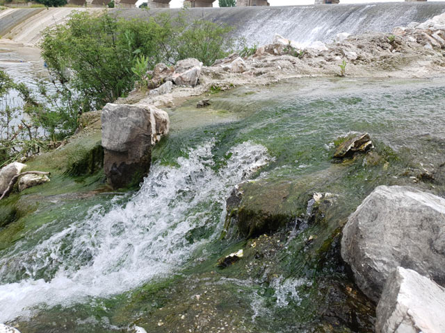 Τα ανθρώπινα έργα και οι παρεμβάσεις για τον έλεγχο των νερών δημιουργούν και ωραίες εικόνες και ήχους του νερού που ρέει ασταμάτητα για τον Πηνειό.