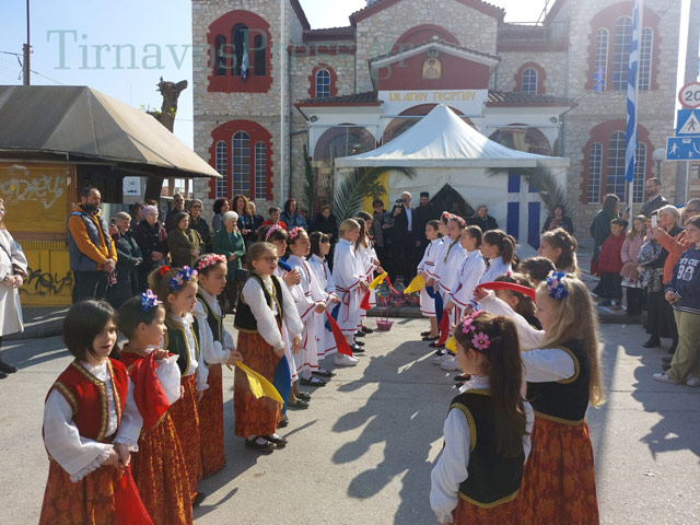 Οι όμορφες μικρές Λαζαρίνες του Πολιτιστικού Συλλόγου Τυρνάβου χόρεψαν σήμερα Σάββατο του Λαζάρου στον Άγιο Γεώργιο Τυρνάβου ακολουθώντας την παράδοση.
