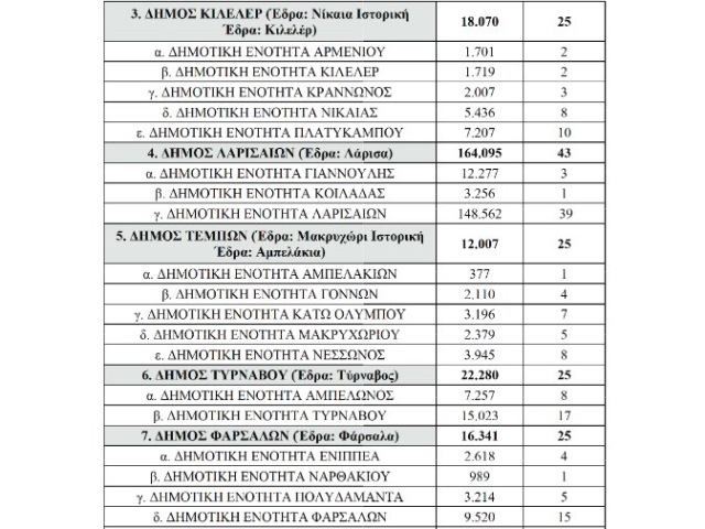 Στο Δήμο Τυρνάβου σε σύνολο 25 εδρών οι 8 πάνε στη Δημοτική Ενότητα Αμπελώνα και οι 17 στη Δημοτική Ενότητα Τυρνάβου