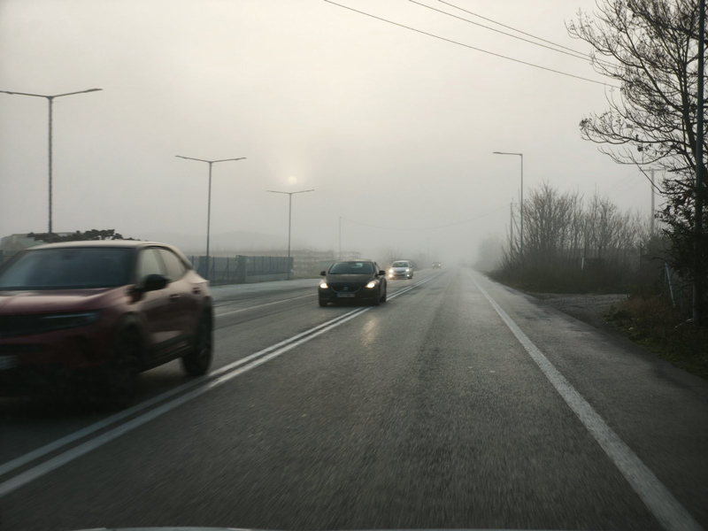 Η πυκνή ομίχλη συνεχίζει να δημιουργεί προβλήματα στις μετακινήσεις μεταξύ Τυρνάβου και Λάρισας, όχι μόνο κατά τη διάρκεια της νύχτας αλλά και το πρωί, όταν πολλοί πολίτες κατευθύνονται στις δουλειές τους. Το φαινόμενο, που επιμένει τις τελευταίες ημέρες, καλύπτει τον δρόμο και μειώνει την ορατότητα, αναγκάζοντας τους οδηγούς να κινούνται με χαμηλές ταχύτητες.