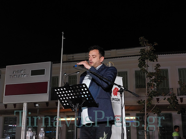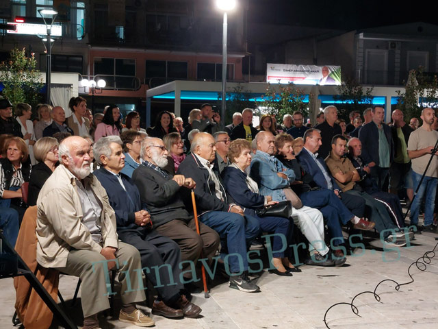 Απόψε από δω, από τον Τύρναβο, την πόλη των αγώνων και των δημοκρατικών παραδόσεων από αυτήν την μεγάλη, πολύ μεγάλη συγκέντρωση στέλνουμε μήνυμα αισιοδοξίας, ελπίδας, μήνυμα αποφασιστικής ενίσχυσης των ψηφοδελτίων της «Λαϊκής Συσπείρωσης», , στον Δημο και την περιφέρεια Θεσσαλίας, παντού.