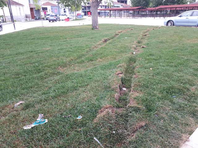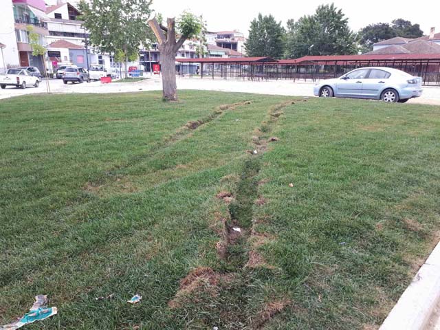 Όργωσαν με αυτοκίνητο το φρέσκο χλοοτάπητα στο χώρο της Λαϊκής αγοράς Τυρνάβου