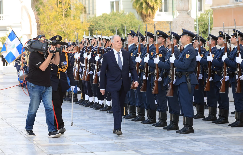 Τον νέο Πρόεδρο της Δημοκρατίας υποδέχτηκε στο Μέγαρο της Βουλής, στην είσοδο του Άγνωστου Στρατιώτη, ο πρωθυπουργός Κυριάκος Μητσοτάκης και ο πρόεδρος της Βουλής των Ελλήνων, Νικήτας Κακλαμάνης. Στο μνημείο, παρατάχθηκαν αγήματα των Ενόπλων Δυνάμεων προς επιθεώρηση από τον Πρόεδρο της Δημοκρατίας.