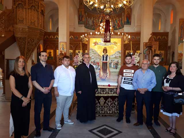 Η τεράστια μεγαλοπρεπή Εικόνα του Αγίου δεσπόζει στον Ιερό Ναό του Αγίου Γεδεών και σήμερα Κυριακή ο ναός θα είναι όλη την ημέρα ανοικτός για επίσκεψη και προσκύνημα.