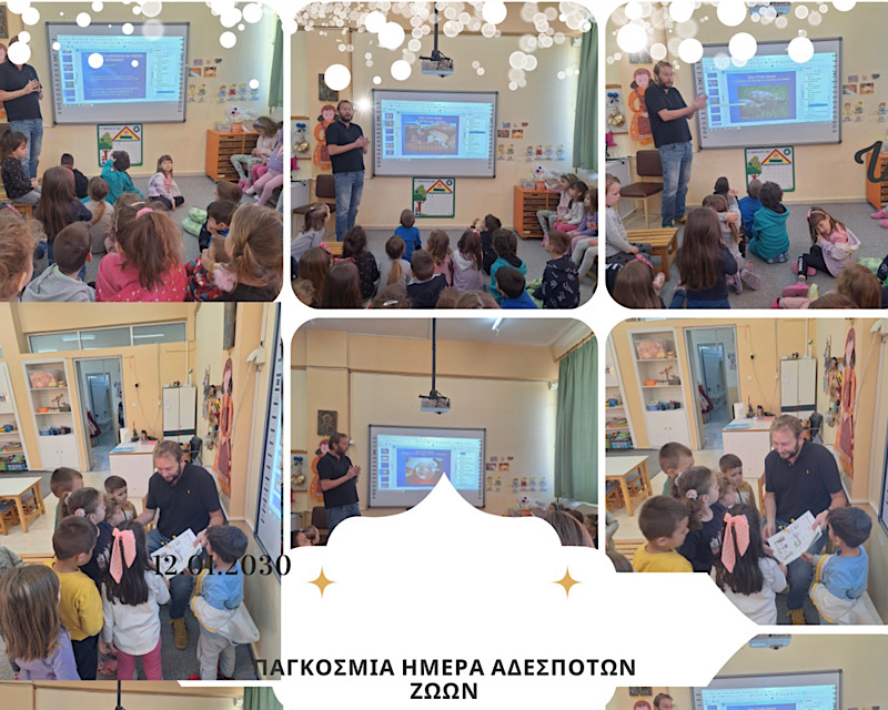 Ο κύριος Ιωάννης Λυτροκάπης, κτηνίατρος, ανταποκρίθηκε στην πρόσκληση των εκπαιδευτικών και επισκέφτηκε το 3ο Νηπιαγωγείο Αμπελώνα με αφορμή την Παγκόσμια Ημέρα Αδέσποτων Ζώων στις 4 Απριλίου 2024.