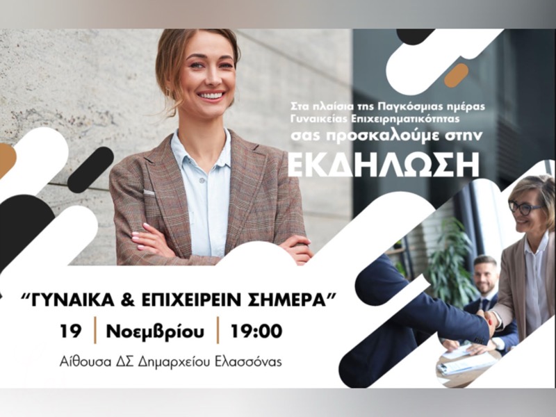 Παγκόσμια Ημέρα Γυναικείας Επιχειρηματικότητας – Πρόσκληση σε εκδήλωση με θέμα: “Γυναίκα & Επιχειρείν Σήμερα”
