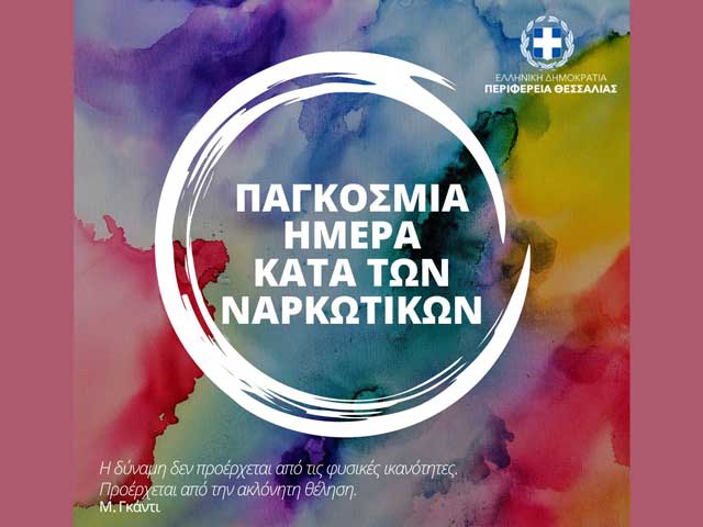 Παγκόσμια Ημέρα κατά των ναρκωτικών: Η Περιφέρεια Θεσσαλίας στηρίζει στην πράξη τους ανθρώπους που δίνουν μάχη για τη ζωή – 4 εκατ. ευρώ για δομές και δράσεις πρόληψης, απεξάρτησης και κοινωνικής ένταξης