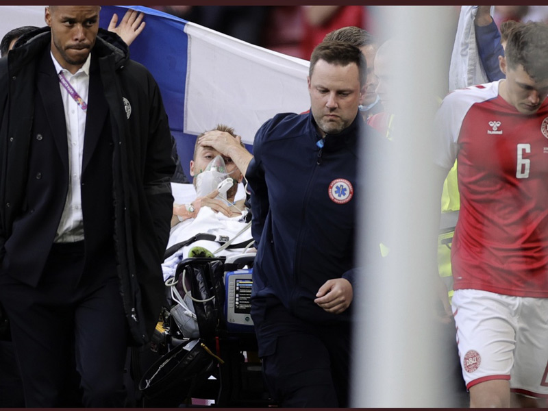 Συγκλονιστική στιγμή στο ματς Δανία-Φιλανδία όταν στο 44ο λεπτό, ο 29χρονος παίκτης της Δανίας Κρίστιαν Έρικσεν κατέρρευσε ξαφνικά. Αμέσως το ιατρικό τιμ μπήκε στο γήπεδο και πραγματοποιήσαν τεχνητή αναπνοή ενώ σύμφωνα με πληροφορίες χρησιμοποιήθηκε και απινιδωτής. Αμέσως οι συμπαίκτες του σχημάτισαν μια ανθρώπινη αλυσίδα για να μην φανεί στις κάμερες αυτήν η τόσο δύσκολη στιγμή του όσο οι γιατροί επιχειρούσαν να τον επαναφέρουν. Τελικά μεταφέρθηκε με φορείο και μεγάλα σεντόνια γύρω του.
